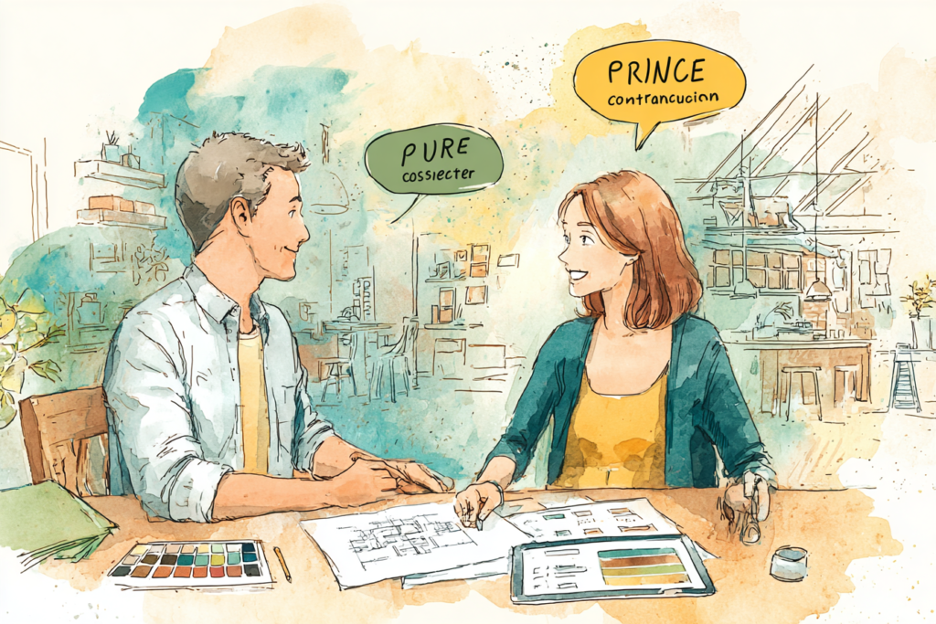 通常、物件購入は不動産会社、工事は工務店、管理は管理会社と窓口がバラバラになりがちです。これでは情報共有が漏れ、トラブルの原因になります。「ふどプロ」なら、グループ会社【かんりす】【たてコデ】と連携し、窓口を一本化しています。