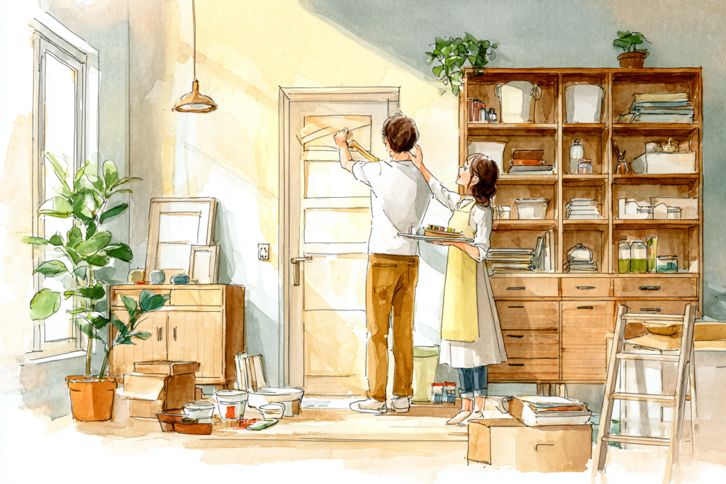 一般的な賃貸では、退去のたびに大家さんが多額の費用をかけて原状回復を行います。しかし『りめいく』では、入居者が「自分の理想の住まい」を作るため、大家さんの修繕負担が減るだけでなく、愛着を持って長く住み続けてもらえる可能性が高まります。