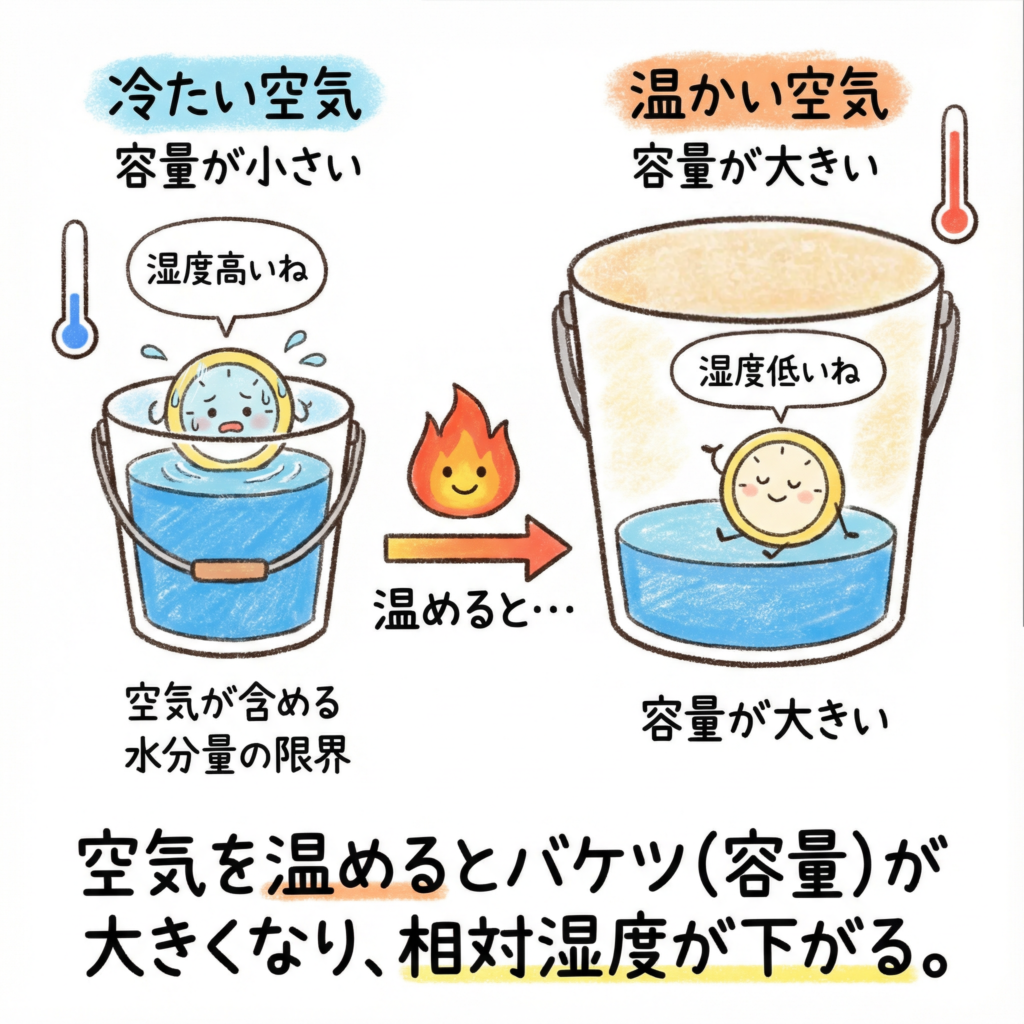 → 相対湿度は約20%に急落!