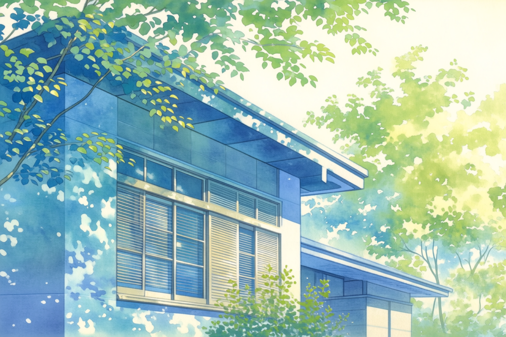 - 軒(のき)や庇(ひさし)の設計:高い位置にある夏の太陽光をカットし、低い冬の光を取り入れる設計が理想です。